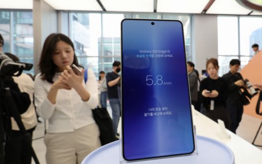13일 오전 서울 삼성 강남에서 열린 갤럭시S25 엣지 미디어행사에서 제품이 공개되고 있다. 갤럭시 S25 엣지의 두께는 5.8㎜(기본모델 7.2㎜) 수준으로 역대 갤럭시 시리즈 중 가장 얇다 2025.5.13 /뉴스1 |