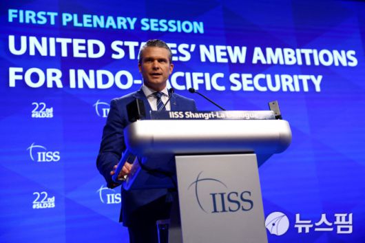 5월 31일 싱가포르에서 열린 아시아안보회의(샹그릴라 대화)에서 연설하는 피트 헤그세스 미국 국방장관 [사진=로이터 뉴스핌] |