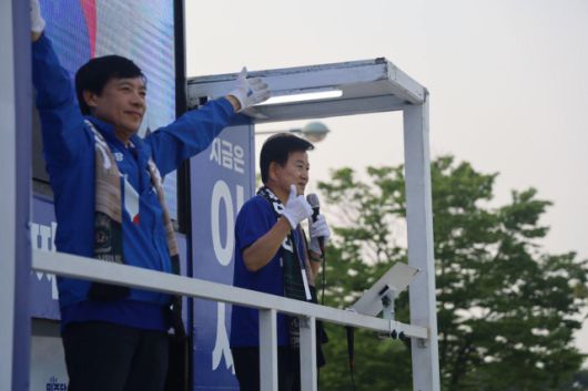 ▲더불어민주당 정동영 5선 의원과 이성윤 초선 의원이 이재명 대선 후보 지지를 호소하고 있다. ⓒ정동영 의원 페이스북 |
