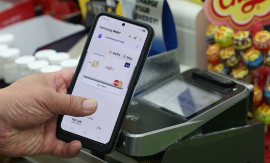 삼성전자 모바일 결제 시스템인 삼성페이에 결제 장애가 발생한 2일 오전 서울 시내 한 편의점에서 한 시민이 결제를 위해 단말기에 지문인식으로 로그인을 시도하고 있다. 연합뉴스