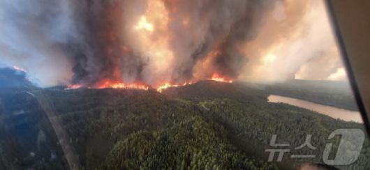 (매니토바 AFP=뉴스1) 우동명 기자 = 27일(현지시간) 산불이 발생한 캐나다 매니토바에서 불길이 급속하게 확산되고 연기가 솟아 오르고 있다. 2025.05.30 |