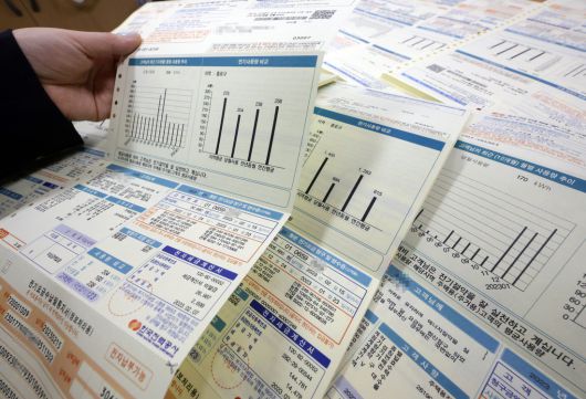 서울 시내의 한 한국전력공사 협력사에서 직원이 전기요금 청구서를 정리하고 있다. 연합뉴 |
