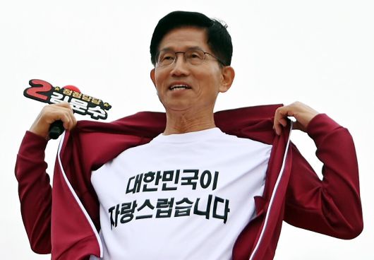 김문수 국민의힘 대선후보가 2일 오전 제주시 동문로터리 탐라문화광장에서 열린 “울려라 함성, 들어라 승리의 메아리” 제주 총괄거점유세 현장에서 시민들에게 지지를 호소하며 재킷을 벗어 \\\'대한민국이 자랑스럽습니다\\\'라는 문구를 보여주고 있다. 공동취재사진단 |
