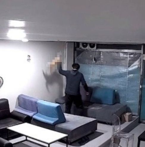 부산의 한 사무실에서 30대 남성이 고양이를 학대하고 있다. [부산동물사랑길고양이보호연대 ] |