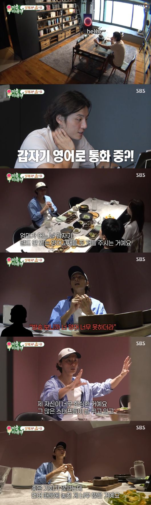 영어 공부를 시작하게 된 계기에 대해 그는 "엄마가 어느 날 갑자기 말도 안 되는 영어교재 두 개를 주시더라. 이게 뭐냐니까 '방송 보니까 너 영어 너무 못하더라'고 하더라"고 전했다.