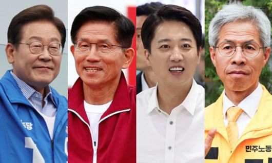 제21대 대통령 선거를 하루 앞둔 2일 이재명 더불어민주당 대선후보와 김문수 국민의힘 대선후보, 이준석 개혁신당 대선후보, 권영국 민주노동당 대선후보가 지지를 호소하고 있다. 뉴시스 |