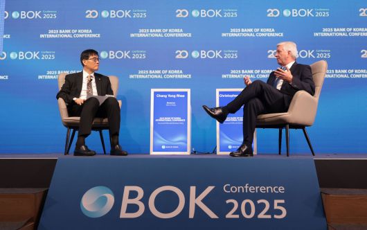 이창용 한국은행 총재와 크리스토퍼 월러 미국 연방준비제도(연준·Fed) 이사가 2일 서울 중구 한국은행 별관에서 열린 2025 BOK 국제콘퍼런스에서 대담하고 있다. [연합] |