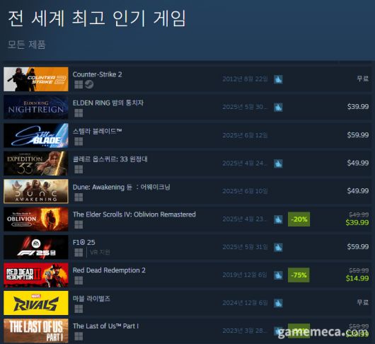 이 외에도 스팀 전 세계 최고 인기 게임에서는 오는 10일 출시되는 ‘듄: 어웨이크닝’이 5위에 자리했다. SF 명작 ‘듄’을 기반으로 한 오픈월드 멀티플레이 생존 게임으로, 아라키스 정복에 나선 여정을 그린다.