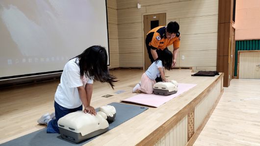 주요 내용은 △심정지 발생 시 어른에게 도움을 요청하는 방법 △정확한 119 신고 절차 △마네킹을 활용한 가슴 압박 체험 등이며, 이해도를 높이기 위해 애니메이션 영상도 함께 활용됐다.