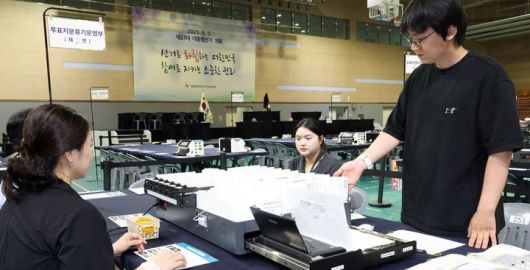 제21대 대통령선거일을 하루 앞둔 2일 세종시 정부세종청사체육관에 마련된 개표소서 선관위 관계자들이 투표지 분류기를 점검하고 있다. ⓒ뉴시스 |