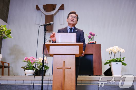 (성남=뉴스1) 안은나 기자 = 이재명 더불어민주당 대통령 후보가 제21대 대통령선거를 하루 앞둔 2일 오후 경기 성남시 주민교회에서 지지를 호소하며 마지막 대국민 기자회견을 하고 있다. 2025.6.2/뉴스1coinlocker@news1.krCopyright ⓒ 뉴스1. All rights reserved. 무단 전재 및 재배포, AI학습 이용 금지.