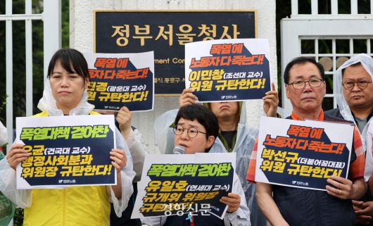 노동계는 규개위가 노동자를 죽음으로 내몰고 있다며 재검토 권고를 즉시 철회하라고 요구했다. 민주노총은 이날 정부서울청사 앞에서 기자회견을 열고 “33도 이상 2시간 작업 시 20분 휴식은 최소한의 조치이며, 조치가 취해지지 않을 경우 생명과 건강에 치명적인 위험으로 이어진다”며 “이를 ‘일률적 규제’ ‘기업의 부담’이라며 운운하는 것은, 노동자들에게 폭염에 쓰러질 때까지 일하라는 것”이라고 했다. 이들은 “노동부 규제 영향 분석에도 폭염 속 휴식권 보장의 10년간 총편익이 5199억원이라고 한다”며 “그럼에도 친기업 규개위는 폭염 속 20분조차 기업의 손해로 간주하고 노동자들의 생명과 건강은 뒷전으로 밀어버렸다”고 했다.