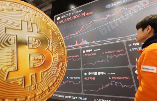 서울 서초구 빗썸라운지에 비트코인 시세가 표시돼 있다. [연합] |
