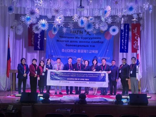 총신대학교는 2일 몽골 울란바타르 몽게니종합학교(Mongeni complex School)에 한국어 몽골 제1교육원을 개원했다. 교육원은 유학생이 한국의 문화와 언어, 법규 등을 교육받을 수 있도록 지원한다. 총신대학교 국제교육원 제공 |