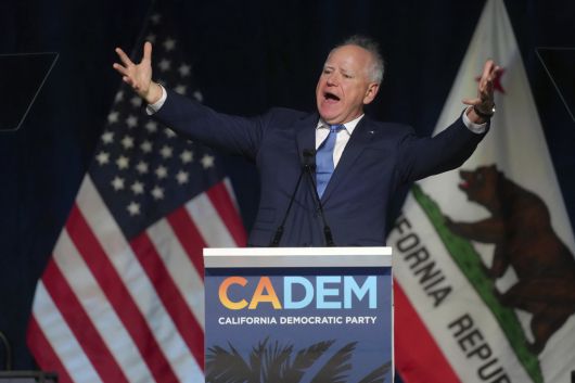 팀 월즈 미네소타 주지사가 지난달 31일(현지시간) 캘리포니아주 애너하임에서 열린 연례 당원 행사에서 연설하고 있다. AP연합뉴스 |