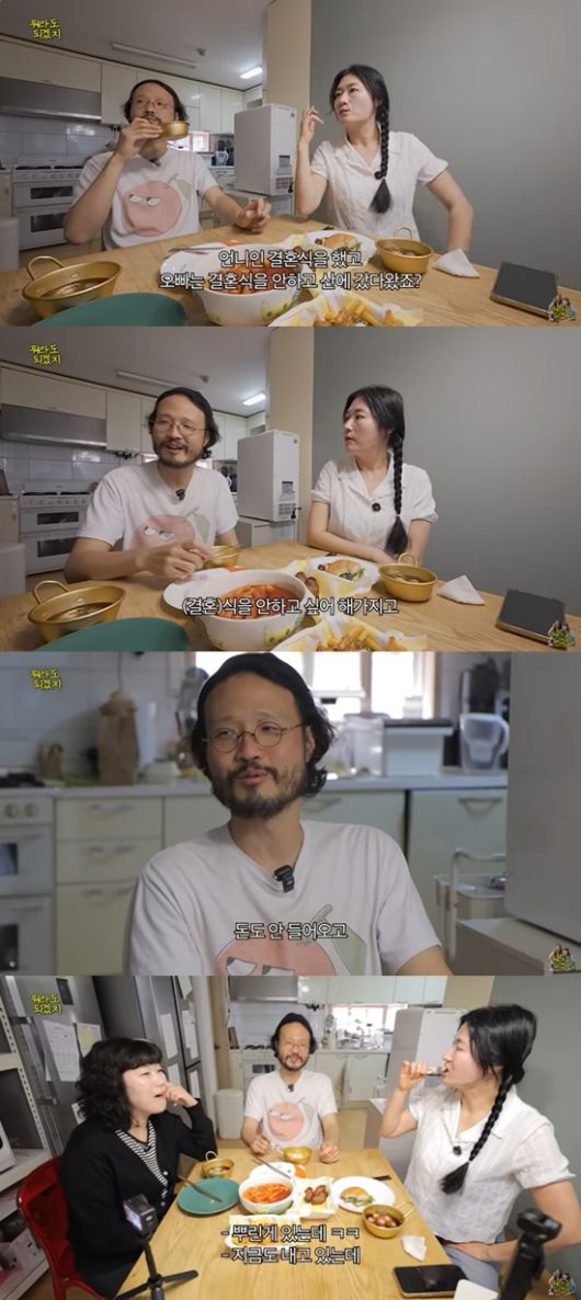 김미려와 비슷한 시기 결혼해 어느덧 결혼 12주년을 맞이하게 된 그는 "결혼식을 안 했다. 결혼식을 안 하고 싶어가지고"라면서 "어쨌든 결혼식을 안 하 이제 돈도 안 들어오고. 아직도 내고 있는데 돈 들어올 데가 없다"고 하소연했다.