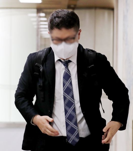 대장동 민간업자 중 한 명인 정영학 회계사가 2023년 6월 8일 서울 서초구 서울중앙지법에서 열린 김용 전 민주연구원 부원장의 불법 대선 자금 수수 혐의 1심 속행 공판에 증인 출석하고 있다. /뉴스1 |