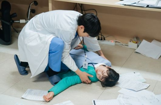쓰러진 간호사 곁에 앉아 상태를 살피는 서의준의 모습도 눈길을 끈다. 흐트러진 문서와 어지럽혀진 공간은 당시 현장의 혼란을 고스란히 전하며 그날 병원에서 무슨 일이 있었는지에 대한 궁금증을 더한다.