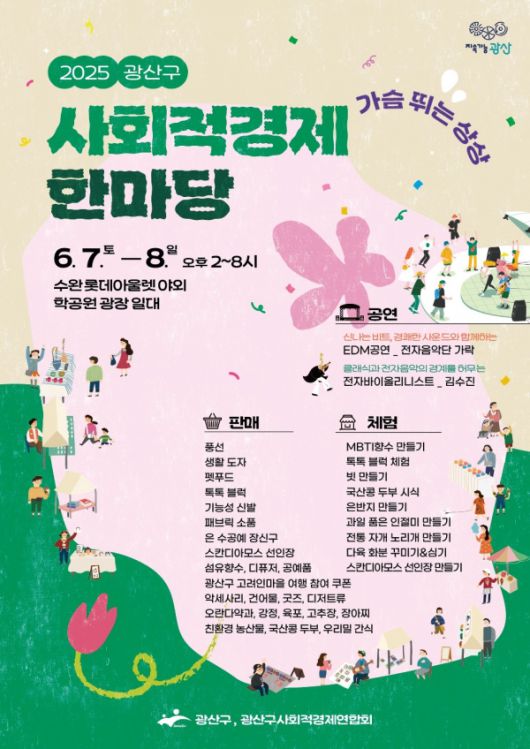 2025년 사회적경제 한마당 웹자보 [사진=광주광역시 광산구][광주 전남=팍스경제TV] 광주광역시 광산구 사회적경제연합회가 7∼8일 이틀간 롯데아울렛 광주수완점 야외 학공원에서 '2025 광산구 사회적경제 한마당'을 개최합니다.