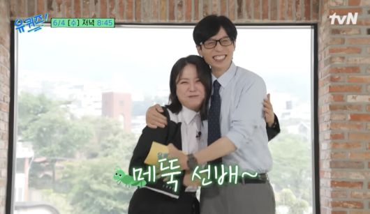 공개된 영상에서 김숙은 "재석 선배"를 외치며 절친 유재석과 포옹을 하며 인사를 나눴다.