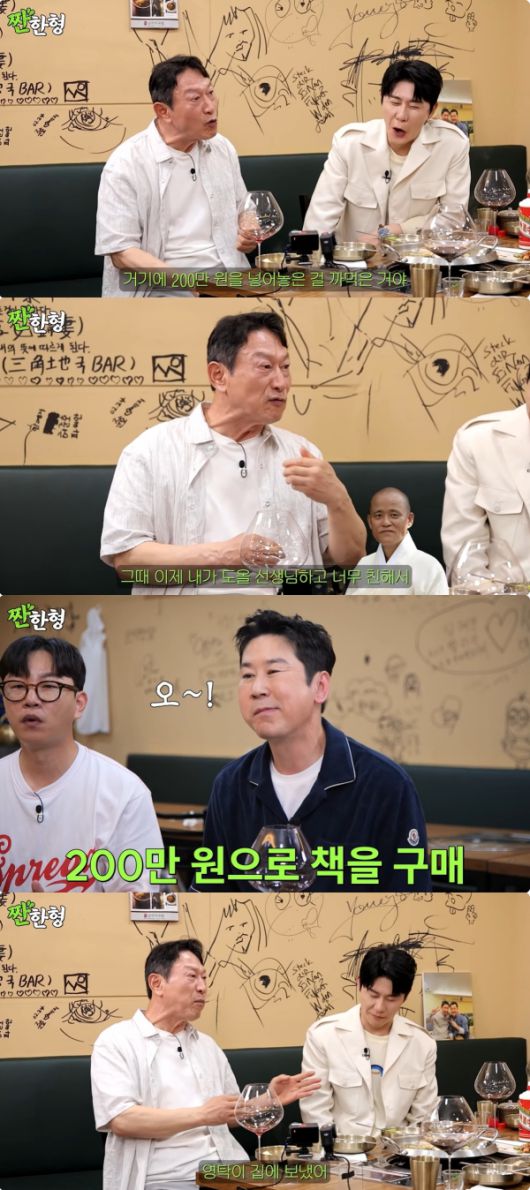 그는 "침대를 들었더니 200만 원 봉투가 나오길래 그때 떠올랐다. 아내한테는 이야기 안 했다"며 "그때 도올 선생님하고 친해서 우리 집안이기도 하고. 도올 선생님이 '노자' 책을 펴냈는데 출판사에 전화해서 200만 원으로 책을 구매했다. 다 우편으로 보내고 영탁이 집에도 보냈다. '노자' 첫 장에 '영탁아 '노자' 읽고 노래 잘해라'라고 썼다. 처음 얘기하는 거다"라고 밝혔다.