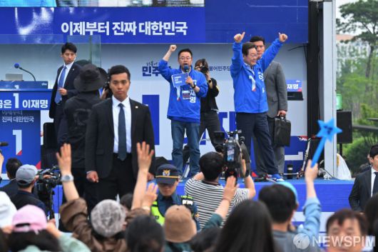 [서울=뉴스핌] 정일구 기자 = 이재명 더불어민주당 대선 후보가 2일 오후 서울 강서구 서울식물원에서 열린 유세에서 지지를 호소하고 있다. 2025.06.02 mironj19@newspim.com