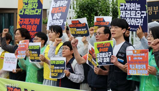 노동계는 규개위가 노동자를 죽음으로 내몰고 있다며 재검토 권고 철회를 요구했다. 민주노총은 이날 정부서울청사 앞에서 기자회견을 열고 “33도 이상 2시간 작업 시 20분 휴식은 최소한의 조치이며, 조치가 취해지지 않으면 생명과 건강에 치명적인 위험으로 이어진다”며 “이를 두고 ‘일률적 규제’ ‘기업의 부담’ 운운하는 것은 노동자들에게 폭염에 쓰러질 때까지 일하라는 것”이라고 했다.