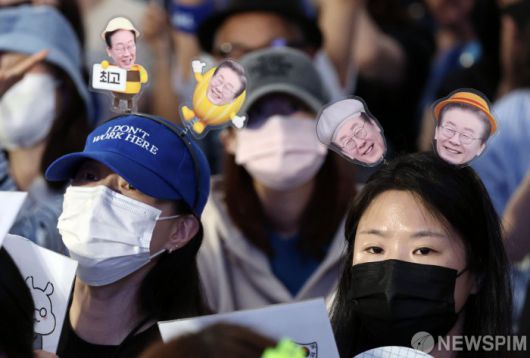 [서울=뉴스핌] 정일구 기자 = 이재명 더불어민주당 대선 후보 지지자들이 2일 오후 서울 여의도공원 문화의마당에서 열린 마지막 유세에 참여해 응원봉을 흔들며 환호하고 있다. 2025.06.02 mironj19@newspim.com