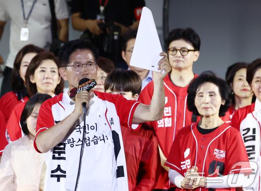(서울=뉴스1) 한상희 서상혁 박기현 기자 = 김문수 국민의힘 대통령 후보는 공식 선거운동 마지막 날인 2일 제주에서 시작해 부산·대구·대전을 거쳐 서울에서 유세를 마무리했다. 그는 마지막 유세에서 "꼭 투표해서 내일 민주주의 혁명을 이룰 수 있길 바란다"고 지지를 호소했다.