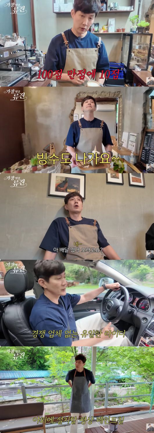이날 류진은 '배달 라이더'로도 활약했다. 산 위에서 근무 중인 손님에게 직접 커피를 전해달라는 처남의 부탁을 받고, 15분간 비포장 도로를 달려 배달을 완료했다. 카페로 복귀한 류진은 곧바로 야외 평상의 페인트칠을 시작하며 능숙한 손길을 자랑했다. "이런 걸 안 도와주면 처남이 너무 힘들어진다"며 열심히 작업에 몰두한 그는, "예전엔 여기 자주 와서 혼자 팥빙수 먹고 책 읽고 가기도 했다. 그럴 땐 찜찜했는데, 오늘처럼 열심히 일하면 집에 가서 푹 잘 수 있을 것 같다"고 너스레를 떨었다.