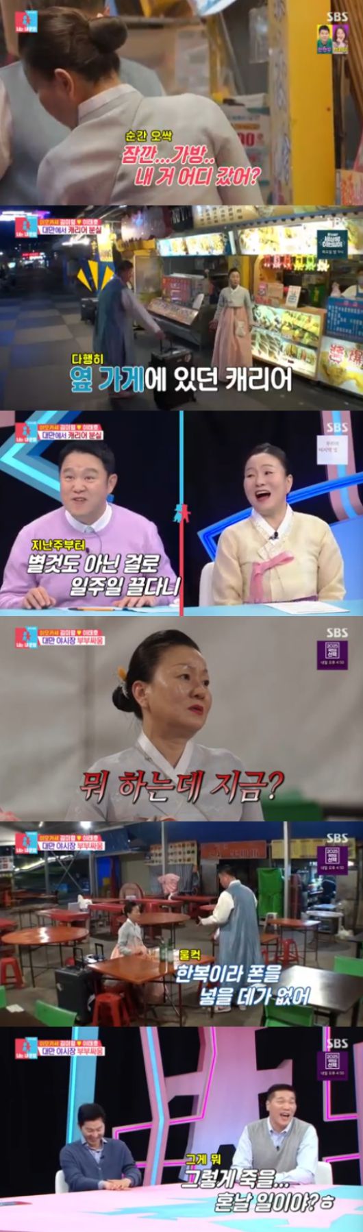하지만 김미령의 캐리어는 바로 옆 가게에 있었고, 남편이 바로 가지고 왔다. 이 모습에 김구라는 "별 것도 아닌 것 가지고 1주일을 끌었다"면서 분노(?)해 웃음을 줬다.