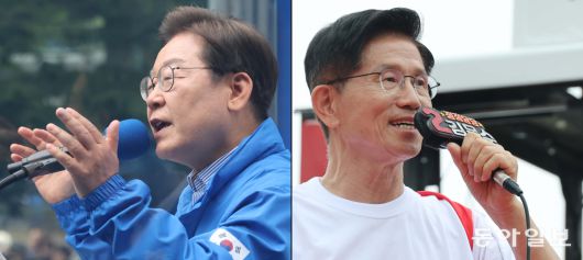 이재명 더불어민주당 대선 후보가 2일 오후 경기 성남시 야탑역 광장에서 열린 경기 성남시·광주시 집중유세에서 지지를 호소하고 있다. 김문수 국민의힘 대선 후보가 2일 동대구역 광장에서 열린 유세에서 지지를 호소하고 있다. 성남=이훈구 기자 ufo.donga.com, 대구=장승윤 기자 tomato99@donga.com |