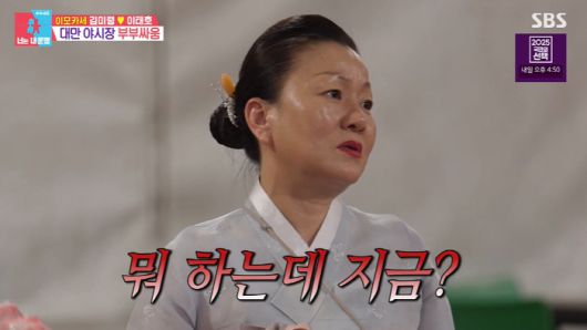 지난 주 반백살에 첫 해외여행을 떠난 김미령 이태호 부부. 공항에서부터 티격태격 이모의 분노 퍼레이드가 이어졌다. 대만에서도 속사포 잔소리가 쏟아졌다. 이지혜는 "이거 보면서 저는 참 많이 반성했다. 내 모습이 저럴 수 있겠구나 거울치료가 됐다"라고 끄덕였다.