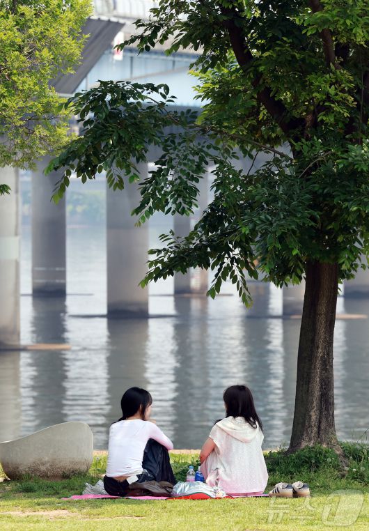 27일 서울 영등포구 여의도 한강공원을 찾은 시민들이 더위를 식히고 있다. 2025.5.27/뉴스1 ⓒ News1 김진환 기자 |
