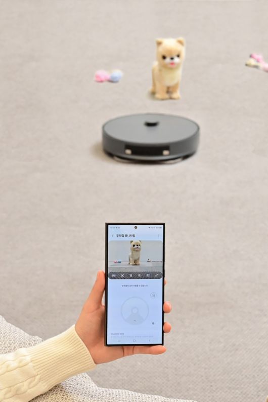 삼성전자 ‘스마트싱스’ 앱에 연결된 로봇청소기를 통해 밖에서도 집 안의 상태를 모니터링할 수 있다. 삼성전자 제공 |