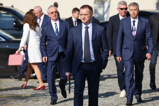 블라디미르 메딘스키 러시아 대통령 보좌관이 2일 튀르키예 이스탄불에서 회담을 마치고 돌아가고 있다. /연합뉴스 |