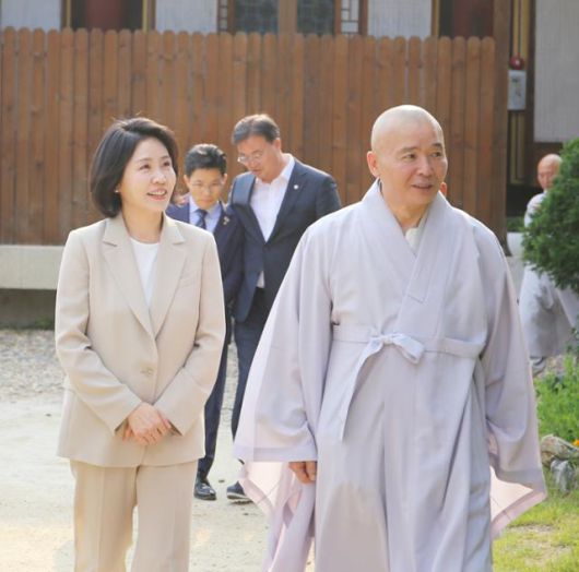 특히 이번 선거운동 기간 중에는 충북 단양의 구인사, 경남 합천의 해인사 등 사찰을 유독 많이 찾았다. 김 여사는 기독교인이지만 조계종 총무원장을 지낸 고(故) 자승스님으로부터 ‘천수안’이라는 법명을 받는 등 불교와도 연이 깊다.