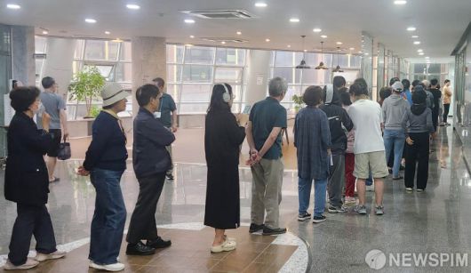 [성남=뉴스핌] 이길동 기자 = 21대 대통령선거 투표일인 3일 오전 경기도 성남시 분당구 산운마을 13단지 커뮤니티센터에 마련된 투표소에 투표하려는 시민들로 붐비고 있다.2025.06.03.gdlee@newspim.com |