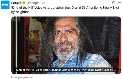 (로스앤젤레스=연합뉴스) 임미나 특파원 = 미국에서 TV 애니메이션 시리즈 '킹 오브 더 힐'(King of the Hill)의 목소리 연기 등으로 알려진 배우 조너선 조스(59)가 자택 인근에서 총격으로 사망했다고 AP통신 등 미 언론이 2일(현지시간) 전했다.
