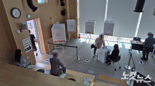 3일 대구 수성구 범어4동행정복지센터 1층에서 주민들이 투표하고 있다. 곽재화 기자 |