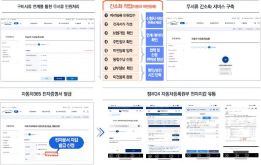 아울러 전자서식을 도입해 위임장, 양도증명서 등 종이서류 작성 절차를 없애고 행정정보를 자동으로 연계해 불필요한 서류 제출을 줄였다.