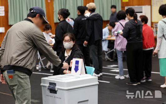 [부산=뉴시스] 하경민 기자 = 제21대 대통령 선거일인 3일 부산 동래구 내성초등학교 체육관에 마련된 복산동 제2투표소에서 유권자들이 소중한 한 표를 행사하고 있다. 2025.06.03. yulnetphoto@newsis.com