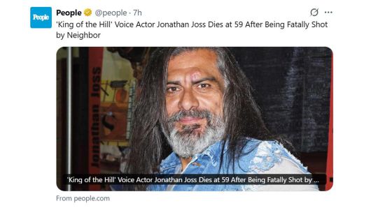 미국에서 TV 애니메이션 시리즈 '킹 오브 더 힐'(King of the Hill)의 목소리 연기 등으로 알려진 배우 조너선 조스(59)가 자택 인근에서 총격으로 사망했다고 현지 언론이 전했습니다.
