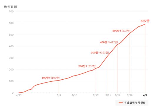 3일 SKT 뉴스룸에 따르면 이날 0시 기준 누적 유심 교체 고객은 589만명을 기록했다. 잔여 예약 고객은 334만 명이다.