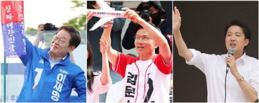 제21대 대통령 선거에 출마한 (왼쪽부터) 더불어민주당 이재명 대선 후보와 국민의힘 김문수 대선 후보, 개혁신당 이준석 대선 후보 모습 [사진=연합뉴스DB] |