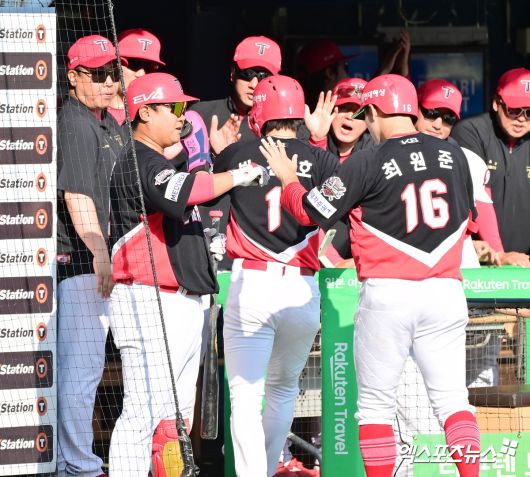 (엑스포츠뉴스 잠실, 김한준 기자) 3일 오후 서울 송파구 잠실야구장에서 열린 '2025 신한 SOL Bank KBO리그' KIA 타이거즈와 두산 베어스의 경기, 1회초 1사 만루 KIA 박찬호와 최원준이 오선우의 2타점 2루타때 득점에 성공하고 있다.김한준 기자 kowel@xportsnews.com