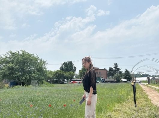 공개된 사진 속 신지는 들꽃이 가득 핀 밭 한가운데에서 핸드폰을 든 채 포즈를 취하고 있다. 검은 레이스 블라우스와 베이지 팬츠 차림의 신지는 투표를 마친 뒤 곧장 자연 속으로 향한 듯한 모습이다.