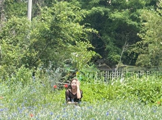 현장을 보면 파란 수레국화와 붉은 들꽃이 흐드러지게 피어난 곳으로, 사진 속 신지는 자연에 스며들 듯 민낯에 가까운 무드와 장난스러운 표정으로 편안한 분위기를 뽐냈다.