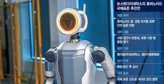 현대차그룹의 로봇 주력 기업인 보스턴다이내믹스가 휴머노이드에 특화된 국제표준 제정에 처음 나선 것으로 확인됐다. 휴머노이드 상용화의 걸림돌로 꼽혔던 로봇의 안전성 문제에 대한 기준을 선제적으로 마련해 휴머노이드 대량 양산 체제를 본격 구축하려는 전략으로 알려졌다.