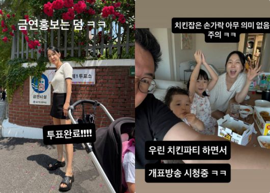 이후 집으로 돌아온 이지혜는 남편 문재완, 두 딸과 함께 치킨 파티를 즐기며 개표 방송을 시청하는 모습을 전했다.